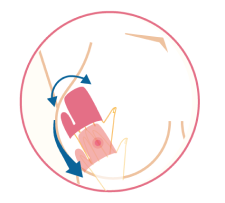 左右に動かしながら少しずつ乳頭部方向にチェックしてください。
