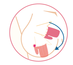 左手で右胸の外側を、3本の指で乳房を押し付けるようにしてください。
